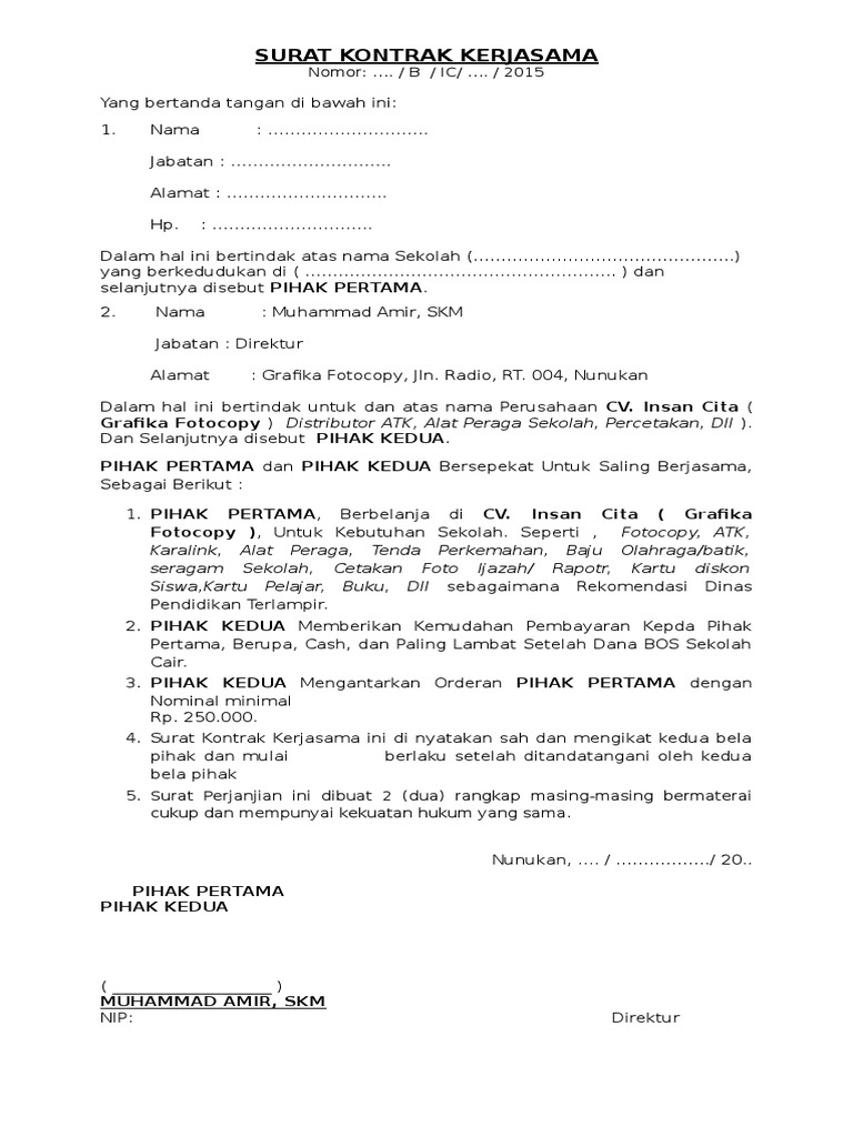 Surat Perjanjian Kontrak Kerjasama Pdf