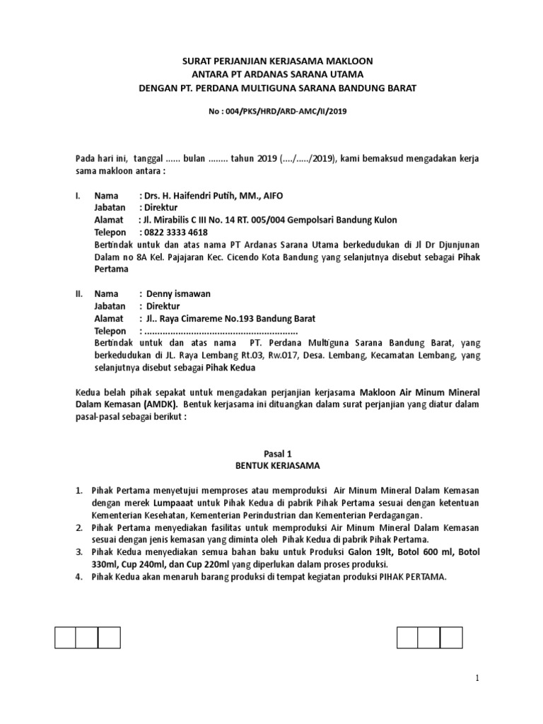 Contoh Surat Perjanjian Kerjasama Perusahaan Pdf