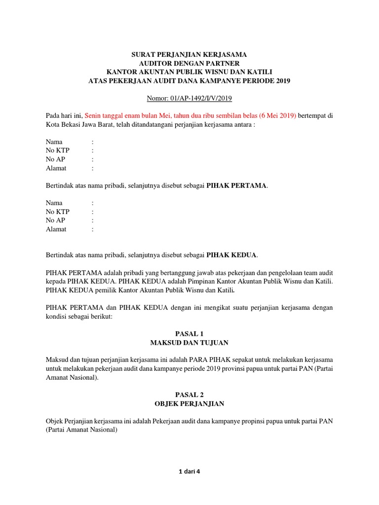 Format Contoh Surat Perjanjian Kerjasama Konveksi Terbaru 2019. Contoh Surat Perjanjian Kerjasama Konsultan Pajak Kumpulan Contoh Surat. Full PDF Package Download Full PDF Package.