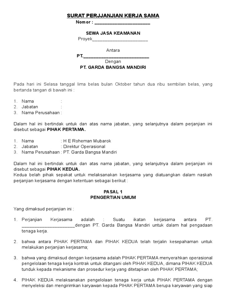 Surat Perjanjian Kerjasama Pengadaan Security Pdf